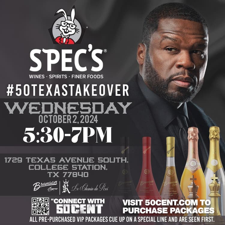 50 Cent is coming to a Spec's near you! Sign up to receive news and updates: